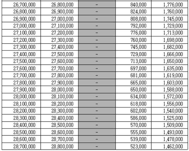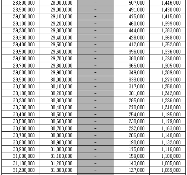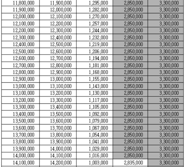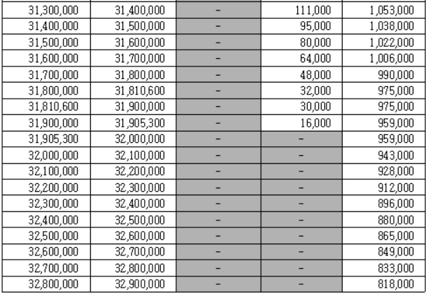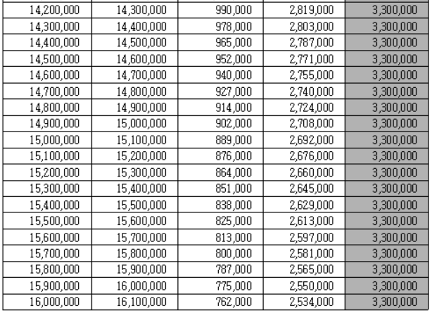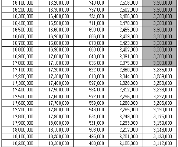 근로장려금 지급 금액 산정표