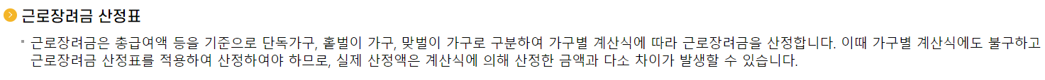 ✅근로장려금 산정표 주의사항